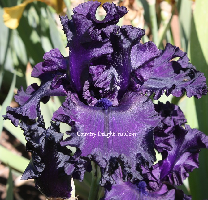 ‘All Night Long’ (Roger Duncan, R. 2004).  TB, 31″ (79 cm), Late bloom. Dark purple-black self, slight lacy fringe on style crests; beards dark purple at end, violet in middle; heavily ruffled; slight sweet fragrance.  Superstition 2005. Honorable Mention 2007Award of Merit 2009.