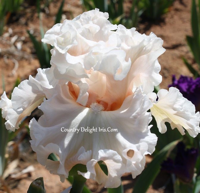 ‘Barely Blushed’ (Michael Sutton, R. 2022) TB, 35″ (89 cm), Midseason to late bloom. Standards white, flushed pink, verdigris at midribs; style arms white; falls white, faint green cast in center; beards pink in throat, middle and ends white; ruffled; sweet fragrance. Sutton’s 2022.