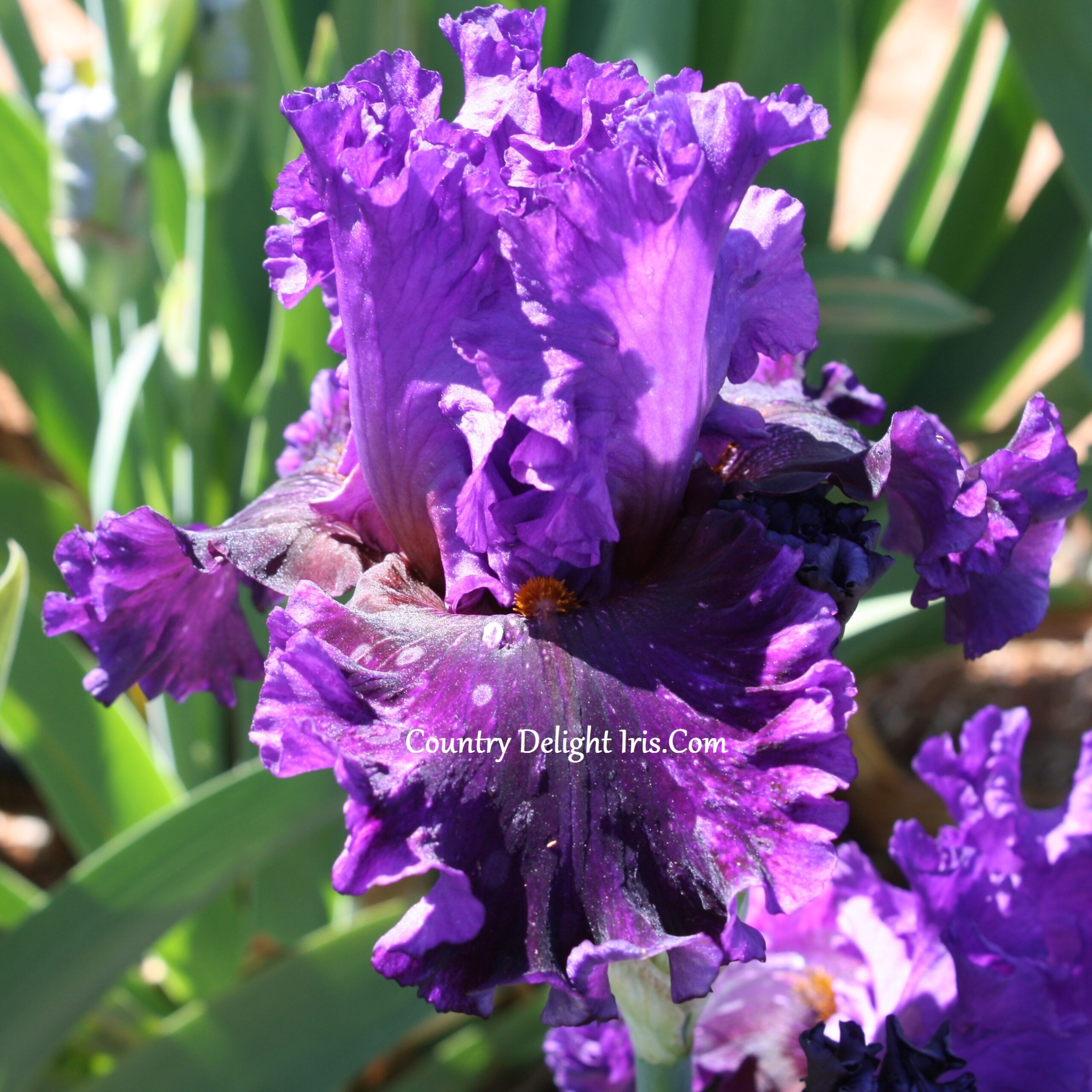 ‘Boldly Go’ (Barry Blyth, R. 2013). TB, 36″ (91 cm). Midseason to late bloom. Standards violet; falls black-violet lightening towards edge, 1/4″ violet edge; beards light gold-bronze; slight musky fragrance. Tempo Two 2013/14.