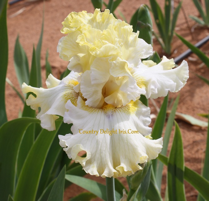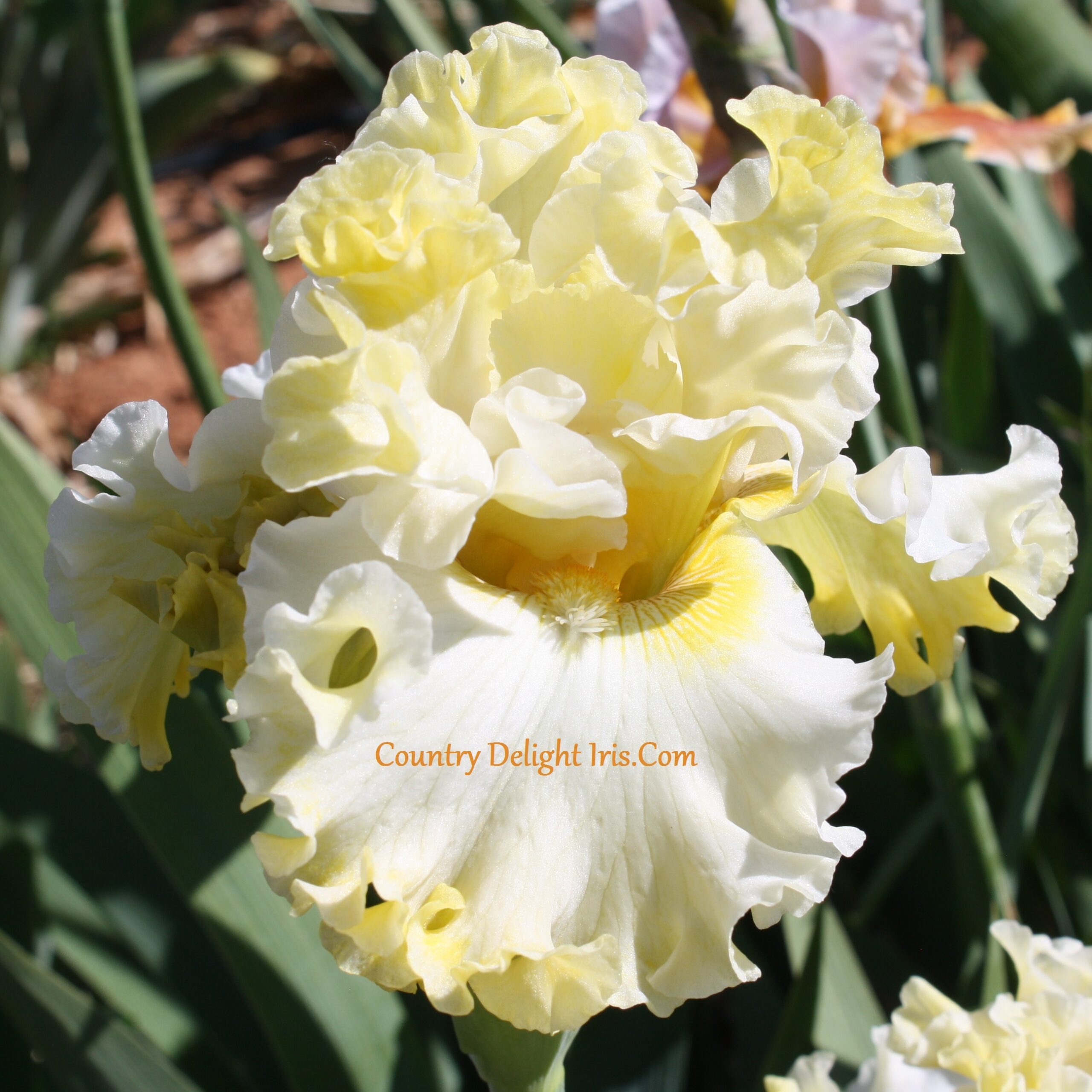 ‘By Moonlight’ (Barry Blyth, R. 2017) TB, 35″ (89 cm), Midseason to late midseason bloom. Standards creamy white; falls same, slight lemon flush at hafts; beards lemon; pronounced fragrance. Mid-America 2019.