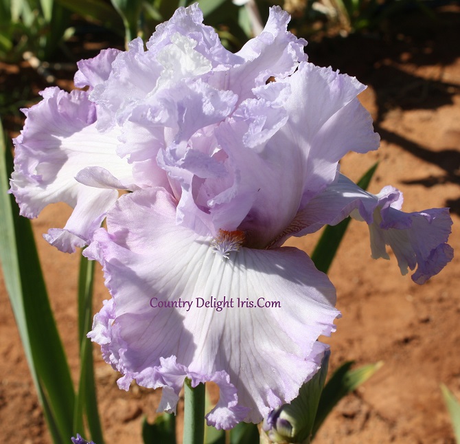 Christmas Present’ (Joseph Ghio, R. 2006).  TB, 34″ (86 cm), Midseason to late bloom. . Blue orchid self, falls lighter in center with greenish cast; beards tangerine, orchid at end. Bay View 2007. Honorable Mention 2009Award of Merit 2011.