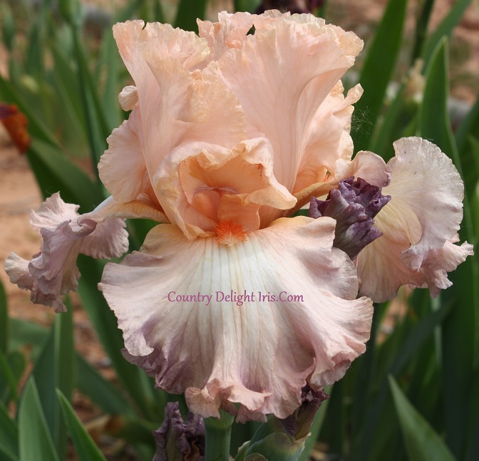 ‘Connie Sue’ (Michael Sutton, R. 2001). TB, 34″ (86 cm), Late bloom. Standards venetian pink; falls rose lilac paler near beard, shoulders flesh; beards dutch vermilion; heavily ruffled, laced; slight sweet fragrance. Sutton 2002
