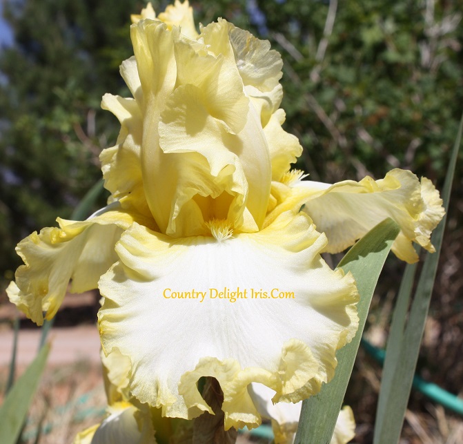 ‘Critic’s Choice’ (Lilly Gartman, R. 1988).  TB, 35″ (89 cm), Midseason bloom. Creamy white, edged chartreuse yellow; gold beard. Roris 1991.