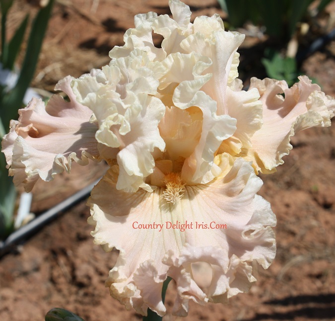 ‘Fairy Tale Romance’ (Thomas Johnson, R. 2019). Seedling TH33D. TB, 34″ (86 cm). Late bloom. Standards flesh pink, lighter edge; style arms pink; falls medium flesh pink; beards orange, white hair tips; sweet fragrance. Mid-America 2019. Honorable Mention 2023.