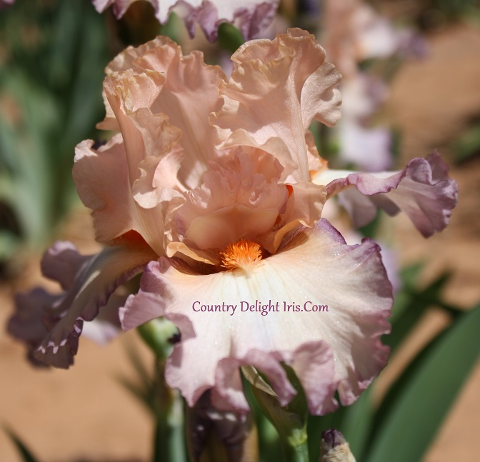 ‘Frances Gaulter’ (Melba Hamblen, R. 1982). TB, 34″ (86 cm). Late midseason bloom. Standards pink; falls laced, ruffled edges of violet, lightening toward hafts; tangerine red beard. Mission Bell Gardens 1983. High Commendation 1982; Honorable Mention 1985.