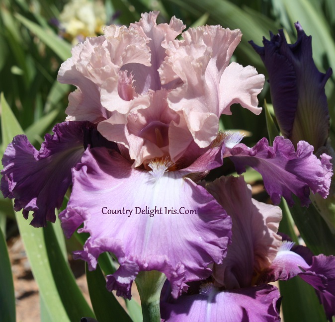 Little John’ (Donald Spoon, R. 1995). TB, height 34″ (86 cm). Midseason bloom. Standards lavender pink, darker lavender arched veining; style arms lavender pink; falls lavender, white center line; beards tangerine, tipped lavender; ruffled, laced. Winterberry 1996. Honorable Mention 1999, Award of Merit 2001.