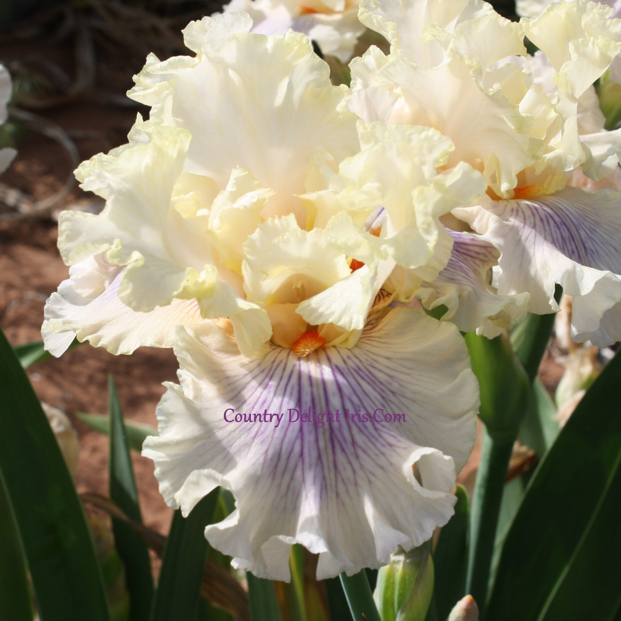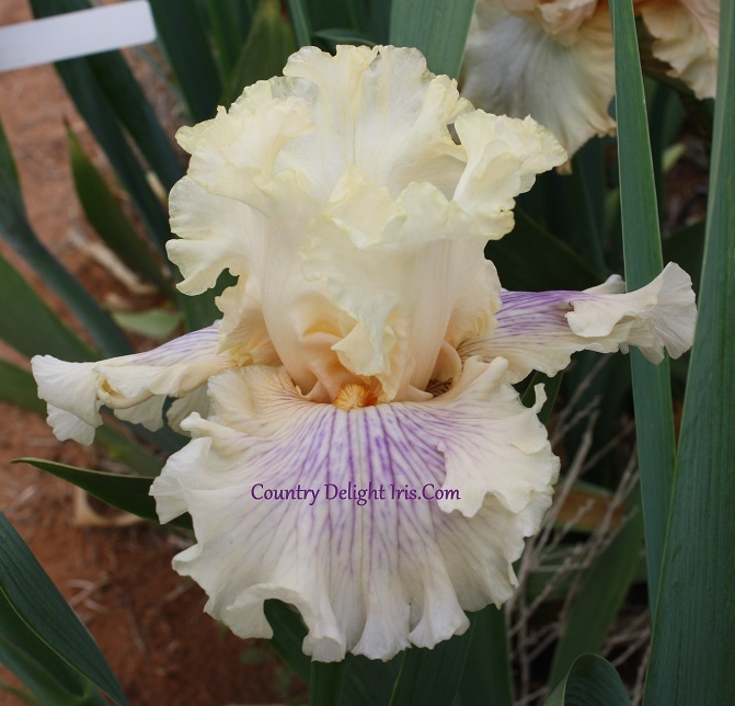 ‘Matters Of The Heart’ (Barry Blyth, R. 2011). TB, 38″ (97 cm), Midseason bloom. Standards soft creamy peach; falls same, veined lavender over center; beards tangerine; slight sweet fragrance. Tempo Two 2012/13.
