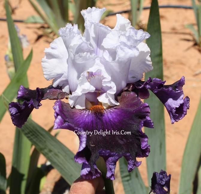 ‘Ozark Jubilee’ (Barbara Nicodemus, R. 2011)  TB, 28-29″ (7186 cm), Early midseason bloom. Standards light orchid-blue, faint gold at base; style arms light orchid-blue, faint gold edge, darker orchid-blue center; falls deep blue-violet, lighter edge, darker shoulders; beards rusty orange, heavily ruffled falls. Honorable Mention 2016.