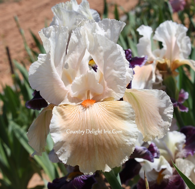 ‘Peak Experience’ (Joseph Hoage, R. 1989). TB, 34″ (86 cm), Midseason to late bloom. Standards white; falls medium pink; pink beard.  Long’s Gardens 1991.