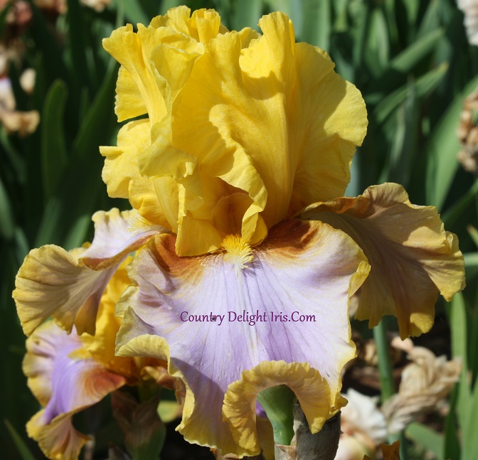 ‘Waimea Canyon Sunrise’ (Larry Johnson, R. 2004) TB, 36″ (91 cm), Midseason bloom. Standards and style arms yellow; falls lavender, rimmed tan, burnished tan shoulders; beards yellow. Cooley 2005. Honorable Mention 2007; Award of Merit 2011.